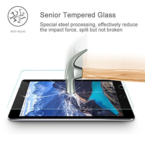 Perfect Protection Say goodbye to the possibility of scratches or drops, just enjoy using your Ipad instead of being too careful. Pasted with bursting disk and 9H scratch resistant surface, this screen protector can prevent glass crack and cullet dropping, and protect your iPad Air from knocks and scratches.