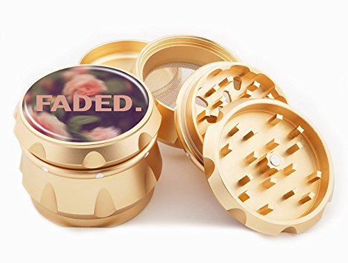 Faded Gold Grinder 2.25" Wide 4 Piece Diamond Cut Blades Herb Grinders Golden Case Hand Crusher Cute Floral Flowers Pink Lit