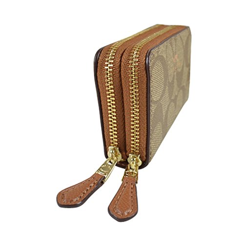 Coach Small Signature PVC Double Zip Coin Case 63975 Khaki Saddle
