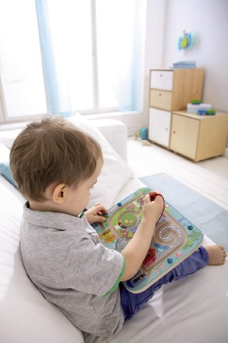 Here little traffic police are needed; they can guide the balls with the magnetic rod into the parking lots that match by color; move the turning disk to regulate the traffic flow or block a street with the pushing block.