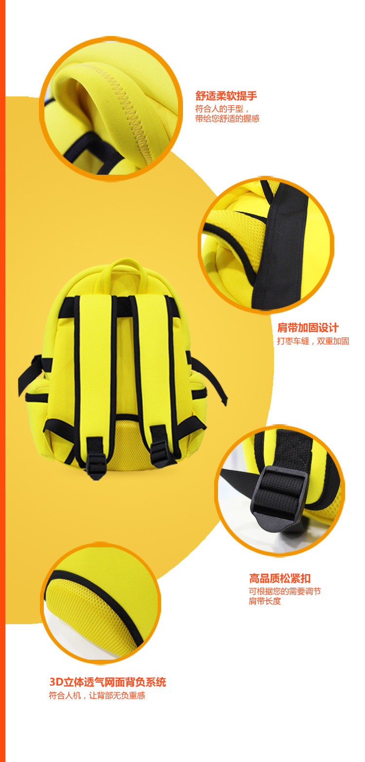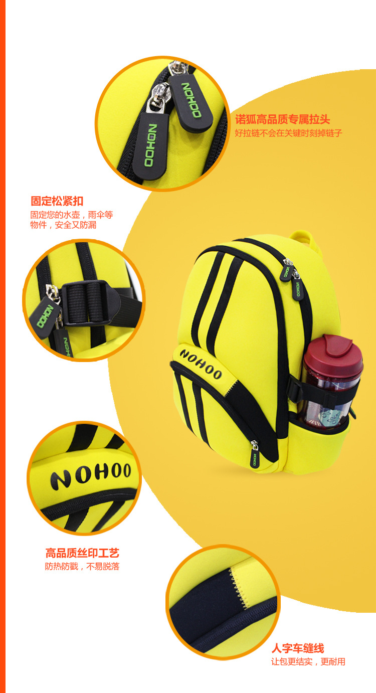 诺狐采用独特的Neoprene潜水料,有别于一般材质,潜水料具有良好的柔软性与弹性,防水防潮,质地轻盈等特点,有适用于专业潜水衣及各种运动领域,其立体塑形极具个性的特性更风靡时尚圈。诺狐童包独特的设计与良好的材质有别于一般的儿童包,立体结构剪裁,鲜艳大胆的配色,打材料的特性发挥到淋漓尽致,为我们的用户提供缤纷、舒适、健康的产品体验。