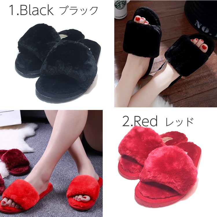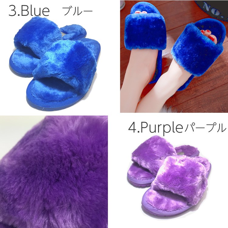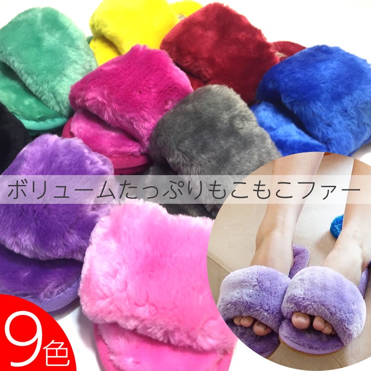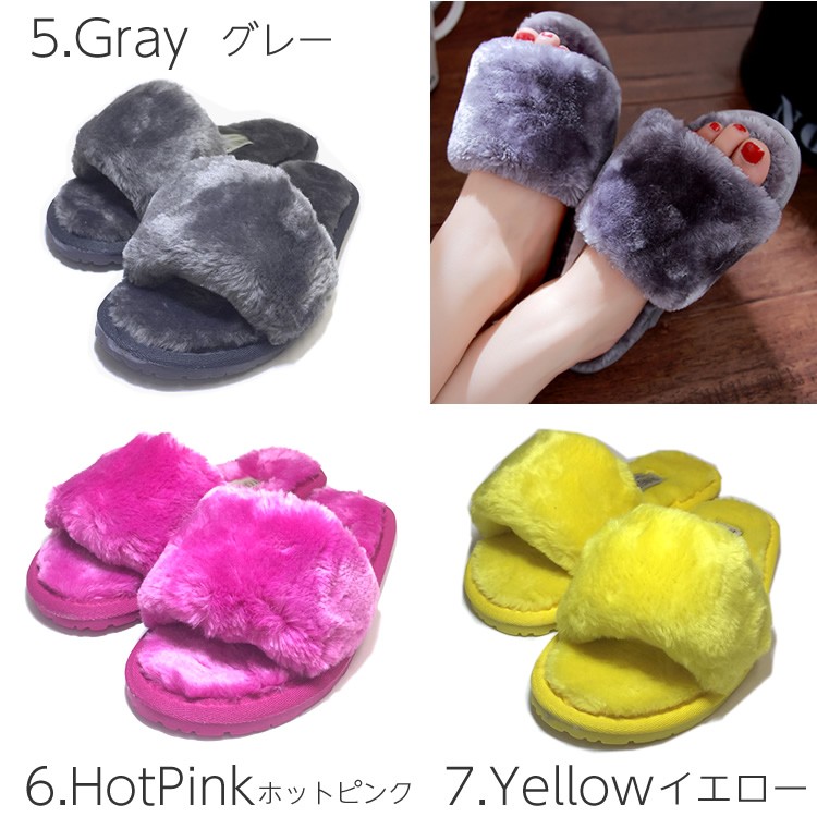 もこもこファー素材のルームシューズです。