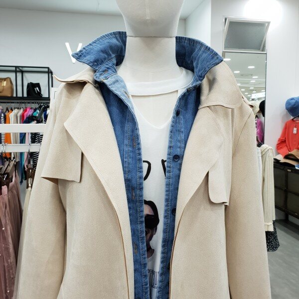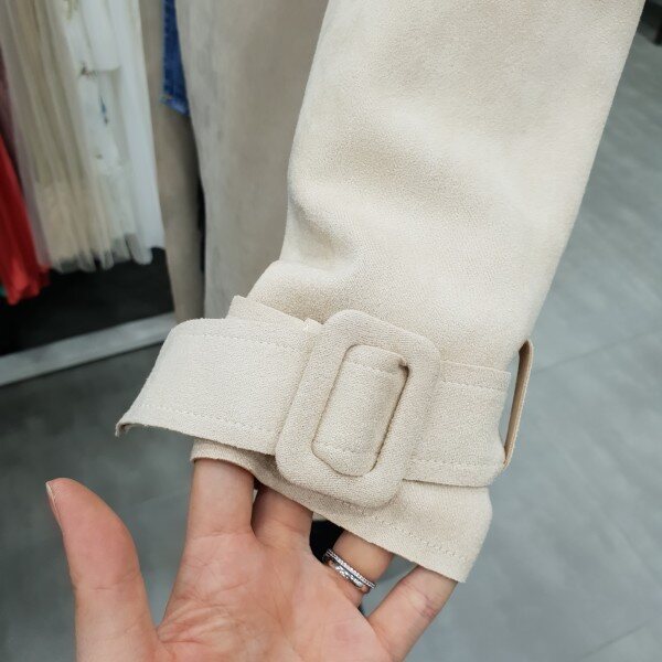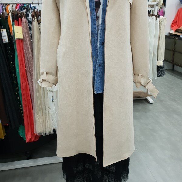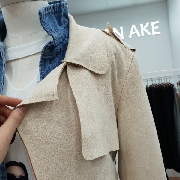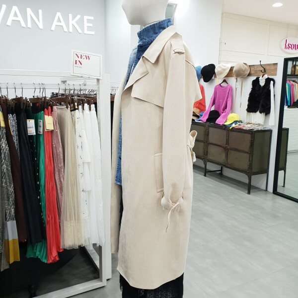 스웨이드 소재로 재작하여 부드럽고 가볍게 걸치기좋은 봄신상 트렌치코트