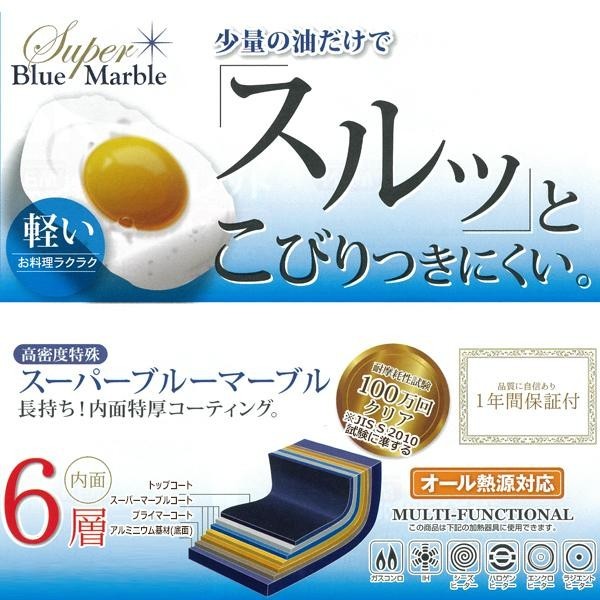 | 軽くてお料理ラクラク!内面特厚コーティングのスーパーブルーマーブルで、とっても長持ち。オール熱源対応です。 |
