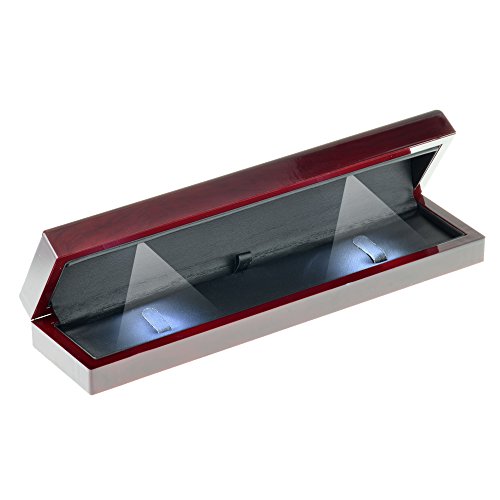 Geff House Cherry Wood Style Plastic Bracelet Gift Box with LED Lights (Black Interior)