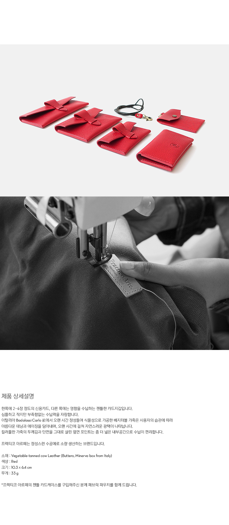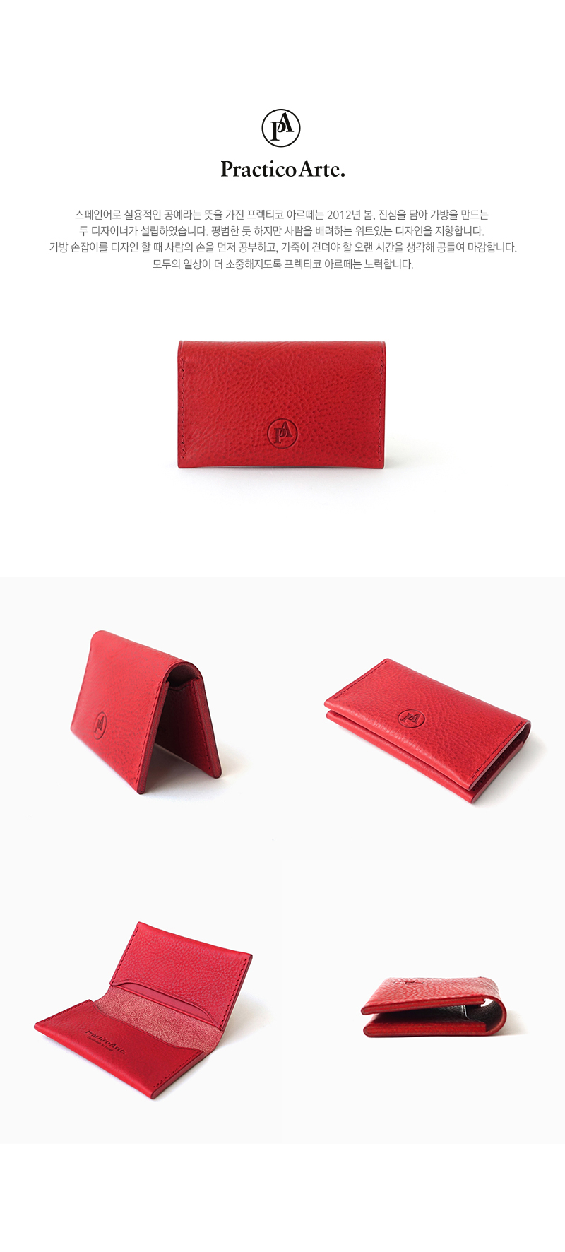 - 주문시 유의사항 : 프렉티코 아르떼의 소품은 1~2일의 시간동안 정성스럽게 핸드메이드됩니다. 조금만 기다려 주세요. 한쪽에 2~4장 정도의 신용카드, 다른 쪽에는 명함을 수납하는 젠틀한 카드지갑입니다. 심플하고 작지만 부족함없는 수납력을 자랑합니다. 이탈리아 Badalassi Carlo 社에서 오랜 시간 정성들여 식물성으로 가공한 베지터블 가죽은 사용자의 습관에 따라 아름다운 태닝과 에이징을 담아내며, 오랜 시간에 걸쳐 자연스러운 광택이 나타납니다. 컬러풀한 가죽의 두께감과 단면을 그대로 살린 옆면 포인트는 좀 더 넓은 내부공간으로 수납이 편리합니다.