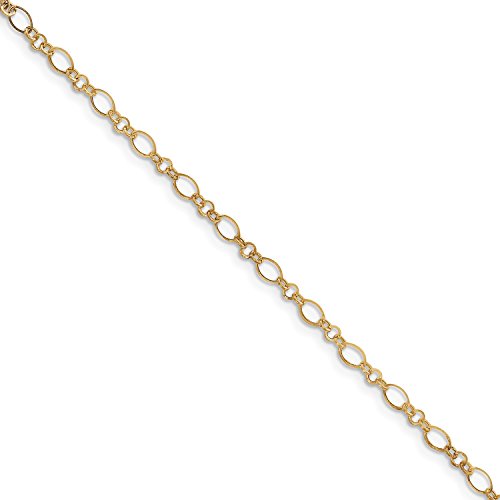 SPECIFICATIONS: Jewelry Type: Anklets, Chain Type: Other Chains, Anklet Type: Chain, Material: Primary: Gold, Material: Primary - Color: Yellow, Material: Primary - Purity: 14K, Finish: Polished, Chain Length: 10 in, Chain Width: 4mm, Clasp /Connector: Spring Ring