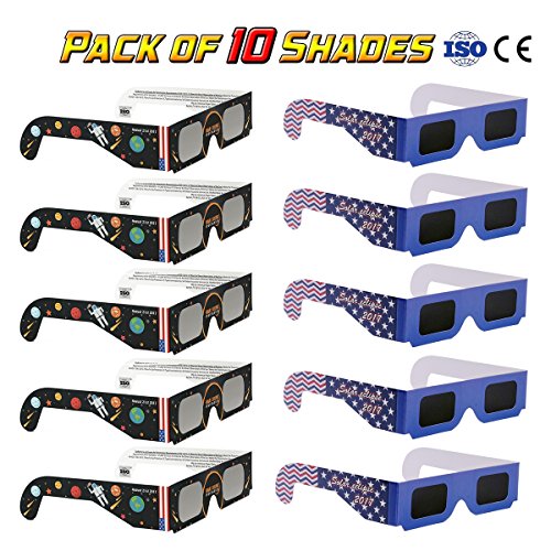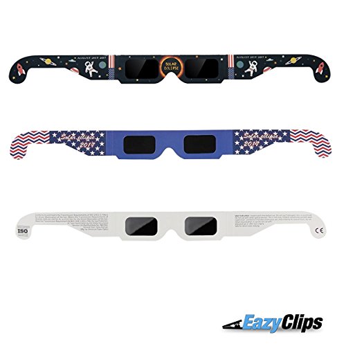 Solar Eclipse Glasses - 10 Pack - Certified ISO 12312-2 - Safe Shades for Direct Sun Viewing - by EazyClips