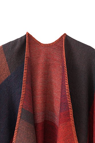 Title : Urban CoCo Women's Color Block Open front Blanket Poncho (red)