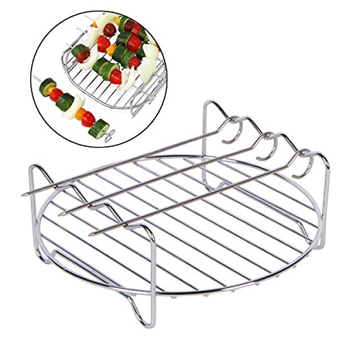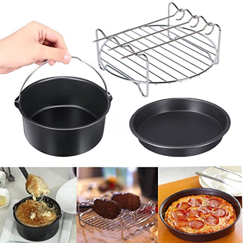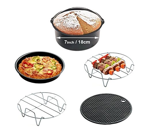 Leap frog 5Pcs Airfryer Zubehor Mit Antihaftbeschichtung Heissluft Fritteuse Gowise Antihaft-Fass / Pizzablech + Silikon-Matte+ Edelstahl-Halter/Doppelschicht-Rack 3.2QT Up
