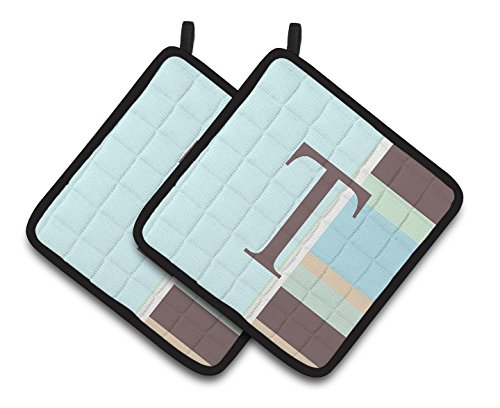 Caroline's Treasures Letter T Initial Monogram - Blue Stripes Pair of Pot Holders CJ1003-TPTHD, 7.5HX7.5W, Multicolor