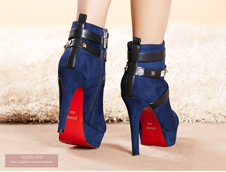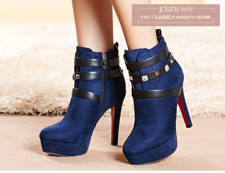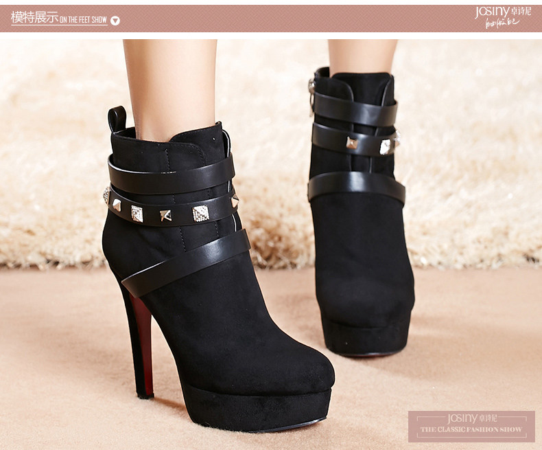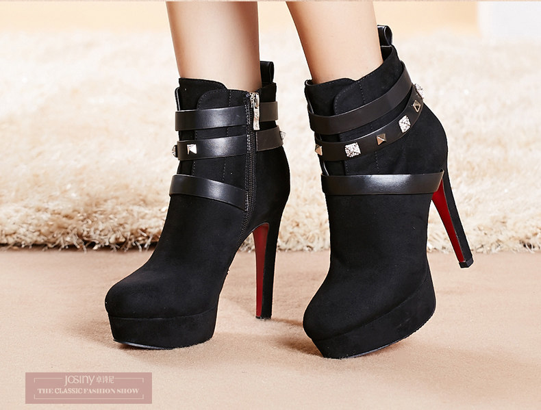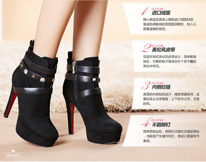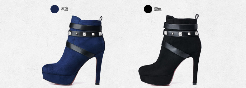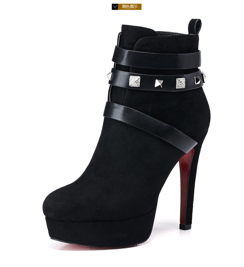 秋冬新款女短靴磨砂超高跟细跟圆头女靴子