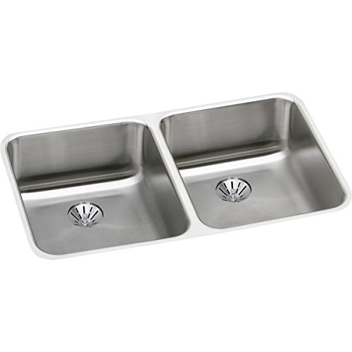 Elkay Lustertone ELUH3118PD Equal Double Bowl Undermount Stainless Steel Kitchen Sink with Perfect Drain