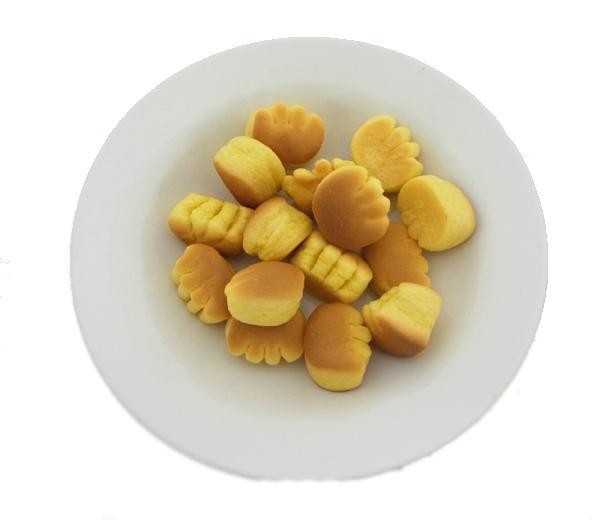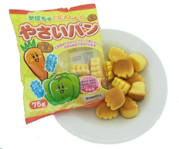 | 原材料 | 小麦粉、糖類、植物油脂、野菜粉末(にんじん・かぼちゃ)、パン酵母、脱脂粉乳、小麦タンパク、食塩、でん粉、加工でん粉、香料、(原材料の一部に大豆を含む) |