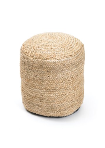 GO Home 13398 Round Braided Hemp Pouf Decor Accent, Natural Kilim