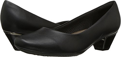 -. Feature : Soft square toe, synthetic leather and textile uppers / Soft textile lining. / Soft textile, memory foam comfort insole. / Rubber outsole. / Heel height: 7/8"