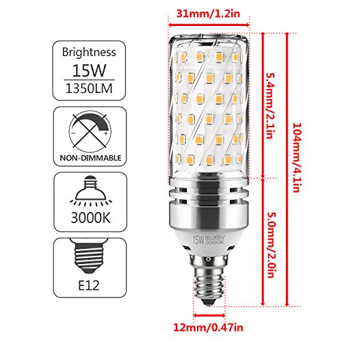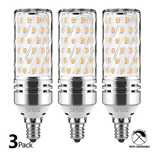 GEZEE E12 LED Corn Bulbs,15W LED Candelabra Light Bulbs 120 Watt Equivalent, 1350lm, Warm White 3000K LED Chandelier Bulbs, Decorative Candle Base E12 Non-Dimmable LED Lamp(3-Pack)