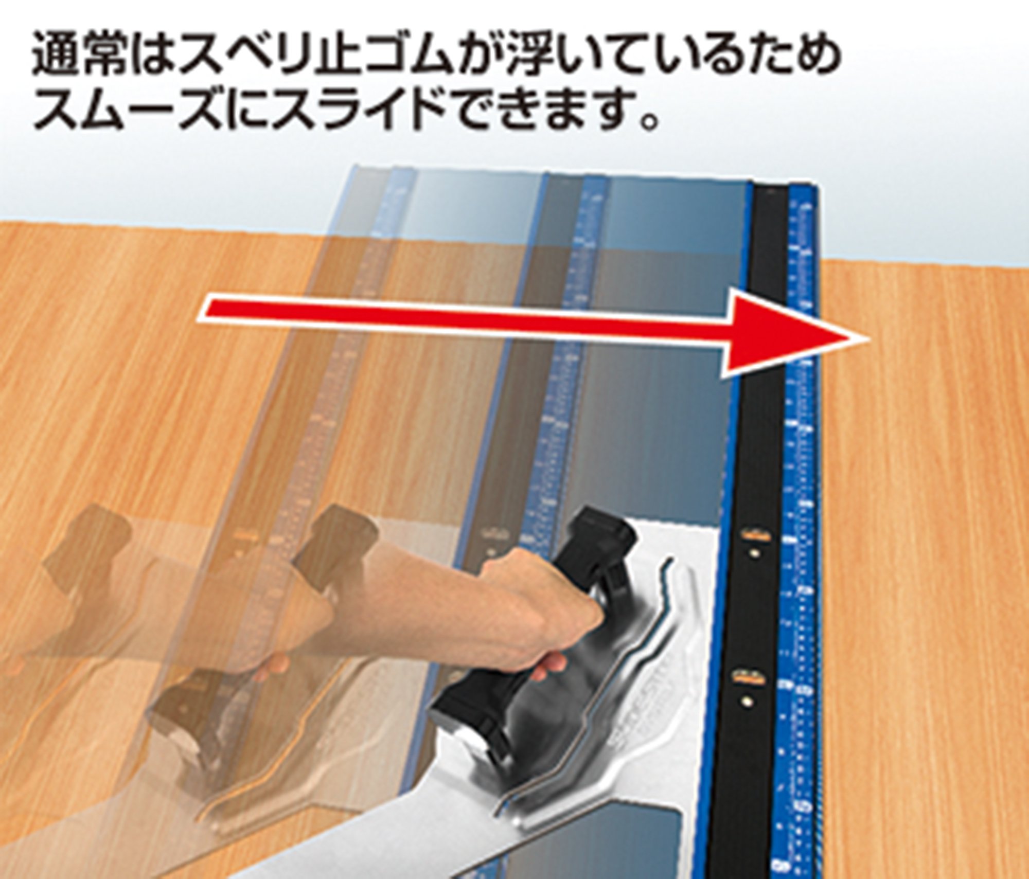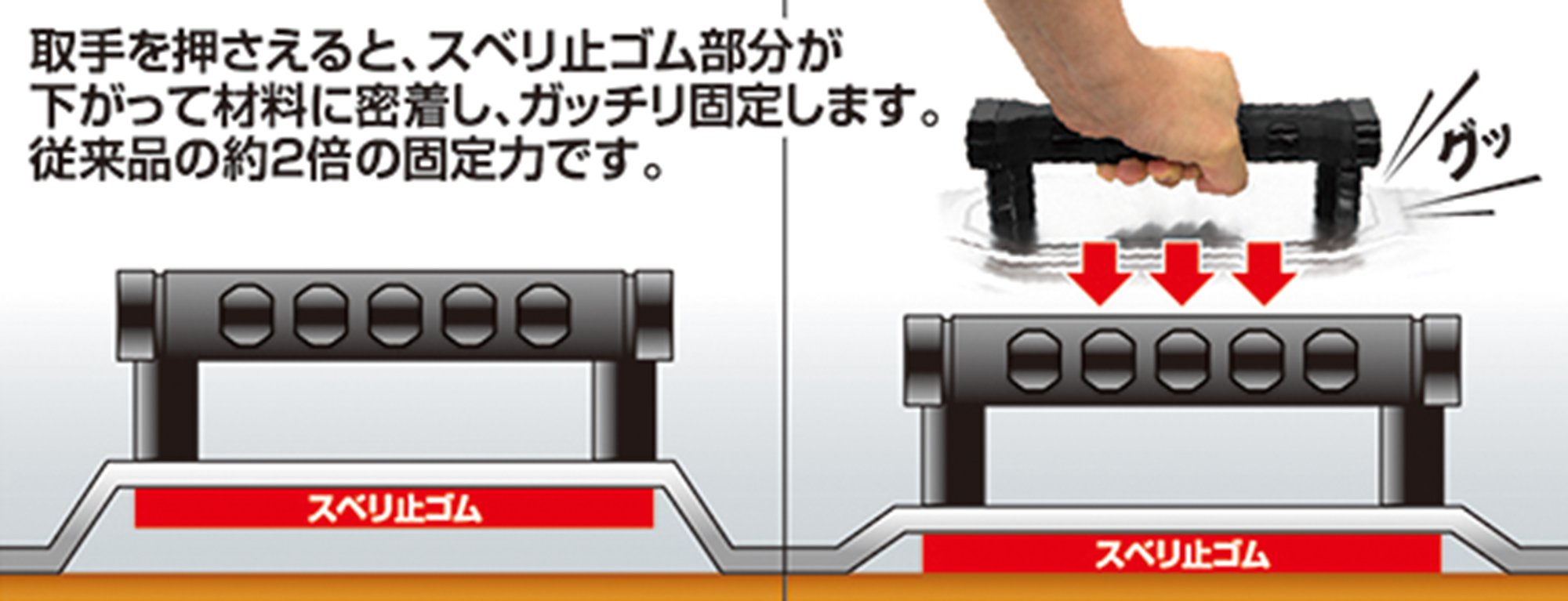 · When holding the handle, the sliding stopper rubber goes down and comes into close contact with the material, fixing firmly, about twice the fixing force of the manufacturer's conventional product.