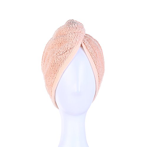 Hair Towel Wrap Drying Hair Towel with Buttons, Quick Magic Dryer, Dry Hair Hat, Wrapped Hair Cap (Pink)
