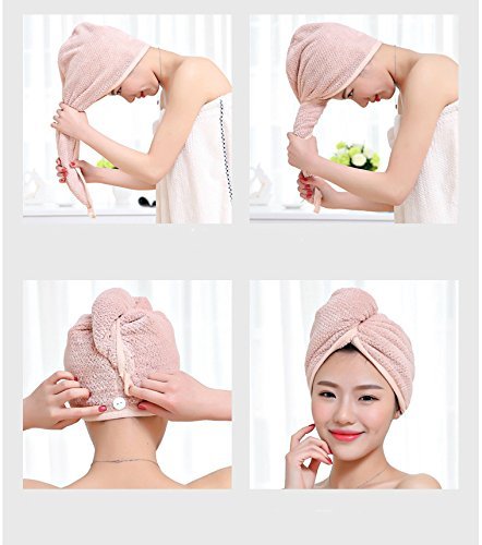 ◆Convenience and durable: when you take a bath, superfine fiber material towel with a button avoids your hair slide down.