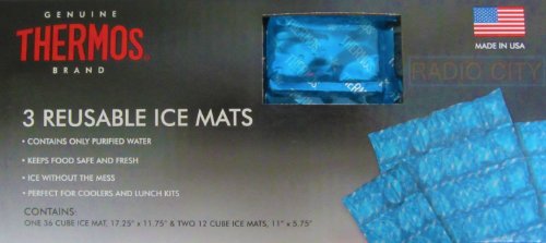 [Product Information]- Thermos 3 piece boxed reusable ice mats includes two 12 cube mats and one 36 cube Mat