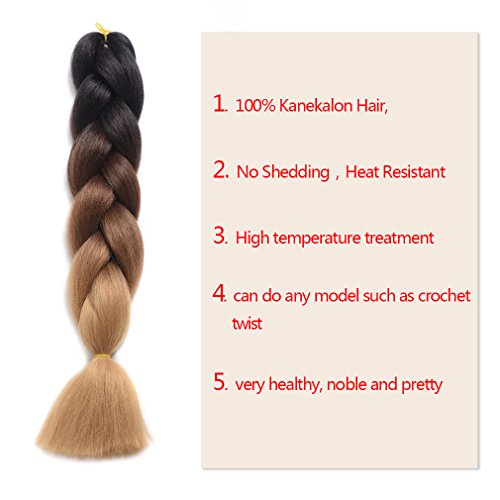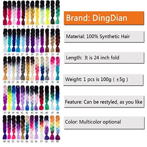 Ding Dian Synthetic Braiding Hair Extensions Kanekalon Hair Ombre Twist Braiding Hair High Temperature Hair Extensions 3Pcs/Lot 100g/Pc 24" (60CM)…...