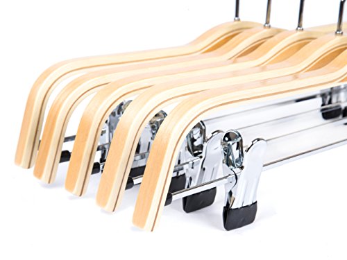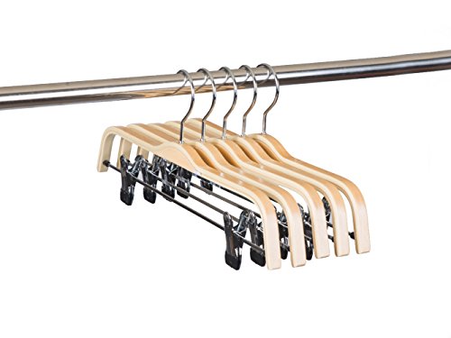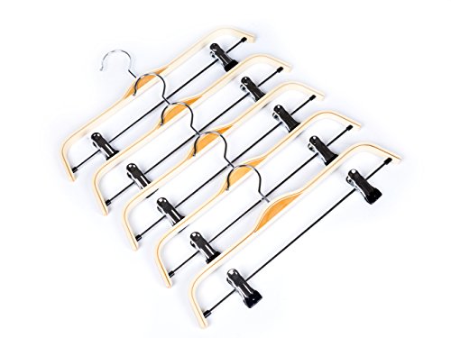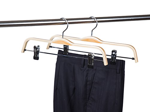 -. Title : Amber Home Natural Wood Pants Slack and Skirt Hangers with Anti-rust Hook and 2-Adjustable Clips 10 Pack