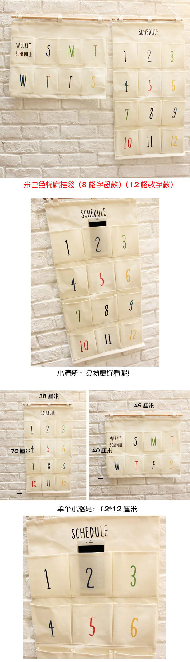 尺寸:12格挂袋(长70*宽38厘米,8格(长40*宽49厘米)