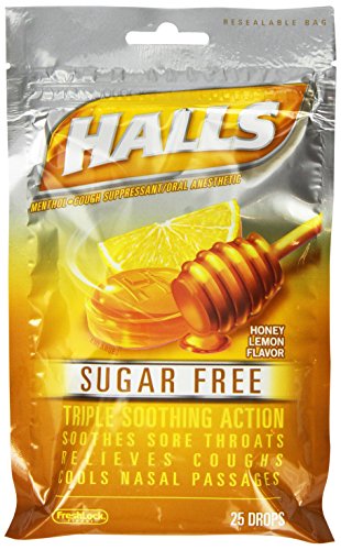 -. Feature : HALLS are formulated with Advanced Vapor Action for fast, effective relief that starts working within 10 seconds. / HALLS fights coughs, soothes sore throats, and cools nasal passages. / Use the fast-relief of HALLS as a compliment to your allergy medication during allergy season when pollen, grass and trees can trigger irritating coughs and scratchy, sore throats. / Enjoy this classic cough suppressant in Sugar-Free Honey-Lemon flavor. / This package includes 25 drops in a flavor-saving resealable bag.