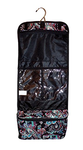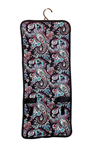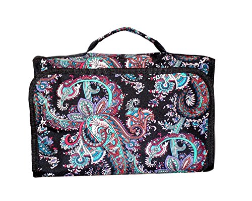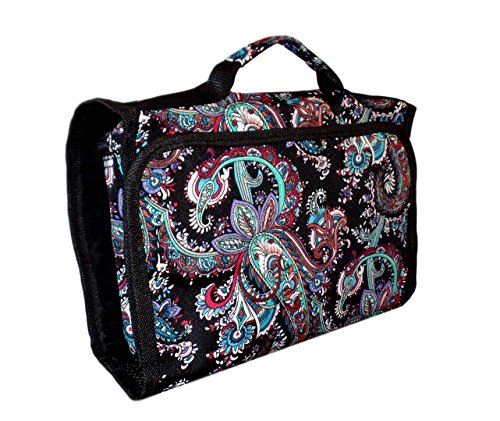 Hanging Toiletry Cosmetic Organizer Bag - Roll up for Storage Travel Back to School (Black Paisley)