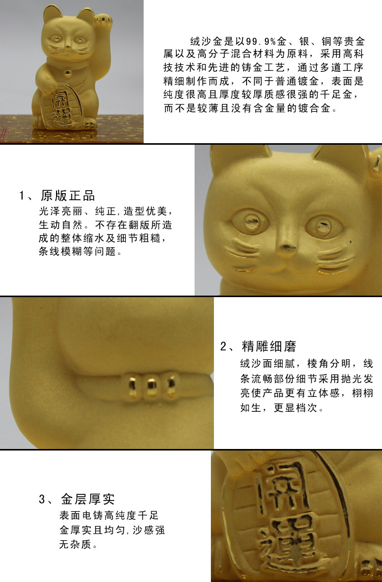 24K金绒沙金汽车摆件招财猫工艺品车内招财饰品保平安