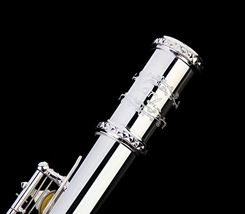 Glory HAND-ENGRAVED SILVER PLATED HIGH GRADE FLUTE 17 Hole OPEN/CLOSED C Flute With Case, Tuning Rod and Cloth,Joint Grease and Gloves ,HIGH GRADE HAND ENGRAVED