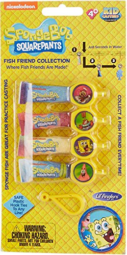 Studio : Lil Anglers LLC Publisher : Lil Anglers LLC Binding : Toy Product Description Catch One Everytime! SpongeBob SquarePants Training Lures magically transform into large colorful sponge fish in the water. Kids can now experience the joys of fishing in a safe, fun, and educational manner without the uncertainty of whether the fish are biting or the risk of sharp hooks. Sponge fish double as casting plugs and can be recast over and over again on or off the water. Start children fishing the right way with SpongeBob SquarePants Training Lures. 0