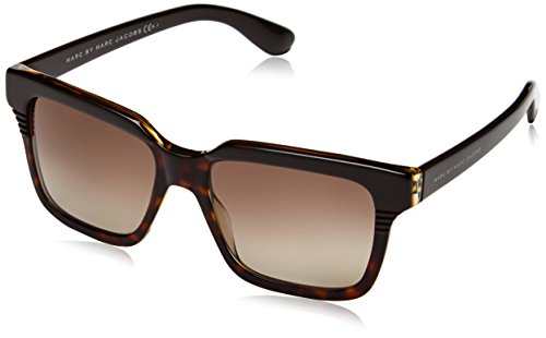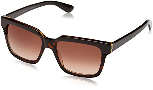 Marc by Marc Jacobs 388S Marc by Marc Jacobs 388Ss bi-layer acetate gives this sunglass a unique look. Colours are really wearable. The frame is durable too. So these will last. Its squared silhouette is crafted from havana. The brow is brown with lines cut in to reveal the havana layer beneath. Temples are brown too. Here the Marc by Marc Jacobs signature is engraved to ensure authenticity. UV400 lenses. Marc by Marc Jacobs sunglasses come with a one year warranty. Colour Code: 02C Colour: Brown / Havana Lens Category: 2 Lens(mm) : 53 Bridge(mm) : 17 Arm Length(mm) : 140