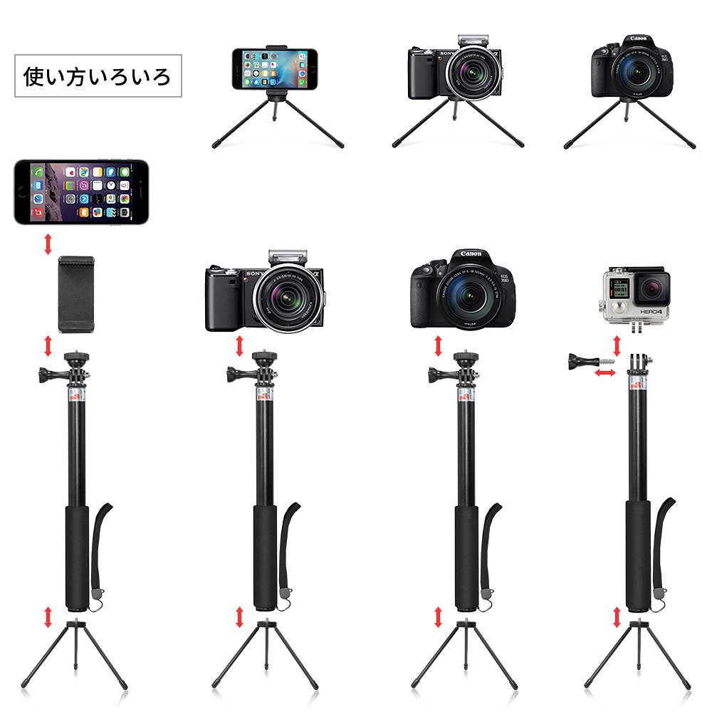 It is a kit that can be used as a self-shooting stick / camera grip / tripod / extension arm.