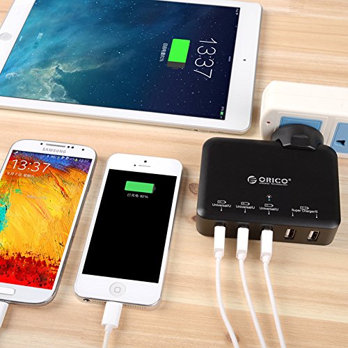 Family-Sized 40 watts through five ports lets you charge iphone, ipad, HTC, Motorola, LG, HTC smartphone,etc. 3x5V 1 Amps "Universal" can use to charger most of the smartphone.