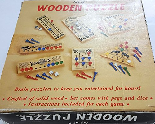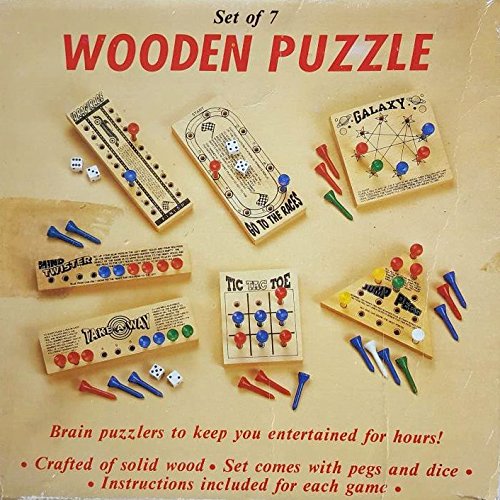 -. Binding : Toy -. Brand : SS -. EAN : 0640081151057 -. Feature : Brain puzzlers to keep you entertained for hours! / Crafted of solid wood. / Set comes with pegs and dice. / Set of 7 different games: Drag race, Mind Twister, Take a way, Go to the race, Galaxy, Tic tac toe and jump pegs. / Perfect for travelling, the beach, and much more! -. IsAdultProduct : 0 -. Label : SS -. Manufacturer : SS -. MPN : 30915 -. NumberOfItems : 1 -. PartNumber : 30915 -. ProductGroup : Toy -. ProductTypeName : TOYS_AND_GAMES -. Publisher : SS -. Studio : SS -. Title : Set of 7 WOODEN PUZZLE With PEGS to Keep Your Brain Occupy -. UPC : 640081151057