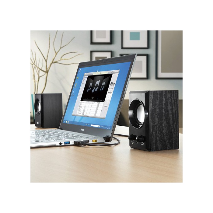 USB케이블1개에 전원과 음원을 공급 성과,passive 라지에타 유닛 탑재에 의해 풍부한 저음역을 재현 할 수 있는 목제USB스피커.블랙. MM-SPU7BK 산와 써플라이