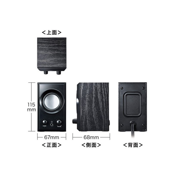 <사양>■컬러:블랙■실용 최대 출력:5W(2.5W+2.5W)■주파수 특성:130Hz~20KHz ■스피커 형식:밀폐회식 풀 레인지 스피커 시스템 ■스피커 사이즈:2인치(직경52mm)■임피던스:4Ω ■입력단자:USB AConnector 수컷(USB2.0/1.1 양규격 대응)■전원:USB포토 보다 공급(DC5V 500mA)■케이스 재질:목제 ■사이즈:W67×D68×H115mm■중량:약570g(본체 만)■케이블장:스피커간 케이블/1.3m,PC 접속USB케이블/1.3m