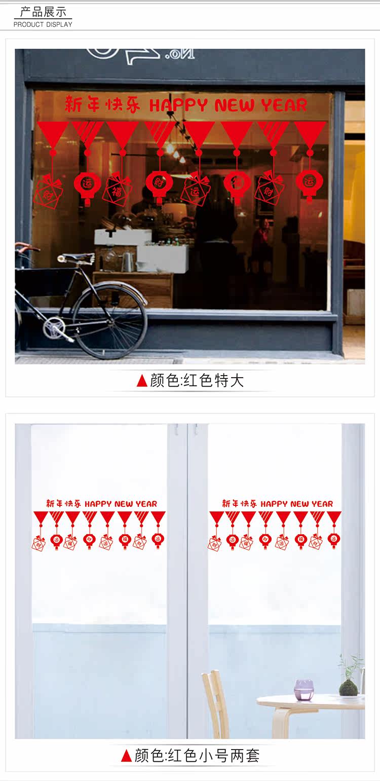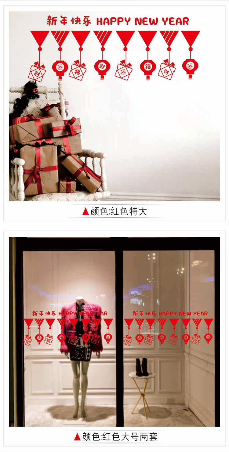 春节新年快乐橱窗贴玻璃门贴画新年中国结装饰品公司窗花贴