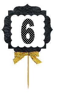 6th Birthday / Anniversary Gold Ribbon Hand Crafted Novelty Cupcake Decoration Toppers / Picks -12ct