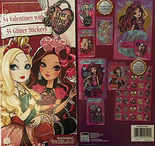 Ever After High Valentines with Glitter Stickers ~ 34 count ~ 1 box