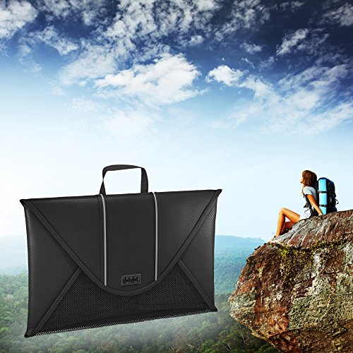 -. Feature : The Best Traveling Accessories - Dot & Dot 15" packing sleeves are the best packing supplies for organizing any lage. Neatly store up to 5-10 clothing items, including t-shirts, dresses, women's cardigans, or blouses. Finally, a solution for wrinkle free shirts while traveling! / Maximize Your Packing Space - Each Dot&Dot packing sleeve comes with a shirt folding board that includes folding tips and instructions, so you can fold your collared shirts, sweaters, uniforms, or even tees to minimize wrinkles. The envelope compresses so it will fit into any backpack, baggage, or suitcase. / Great for your Carry On Bag - This lightweight nylon and mesh fabric envelope with top strap is the perfect carrying case to take through airport security and a garment bag for an extra change of clothes for frequent business travelers. It's also great for world travelers during long international flights! / Great Space Saver for Long Trips - No more jling multiple suitcases! The adjustable Velcro-close sleeves will make it easier to pack all the clothing you need in one space. Whether you're backpacking outdoors or enjoying a relaxing cruise, our packing sleeves give you a simple organization system. / Not Just For Airline Travel- Our flip fold packing sleeves are great for men, women, boys, and girls. With a variety of colors, like black, red, orange, and pink, you can get a packing sleeve for everyone in the family. They're great for long car rides and hotel rooms.