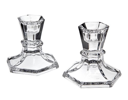 Godinger Silver Art Set of 2 Hexagon Crystal Candle Stick Holders