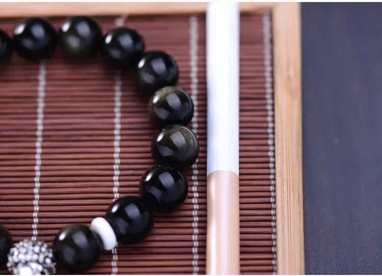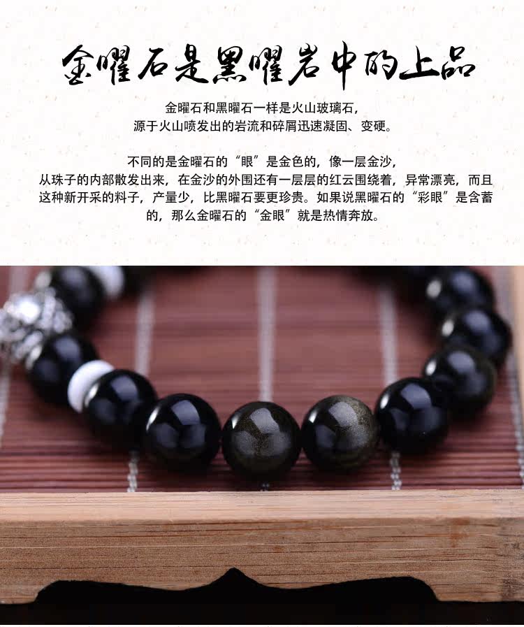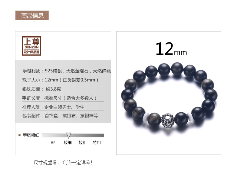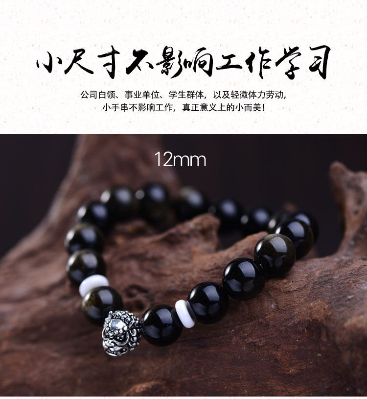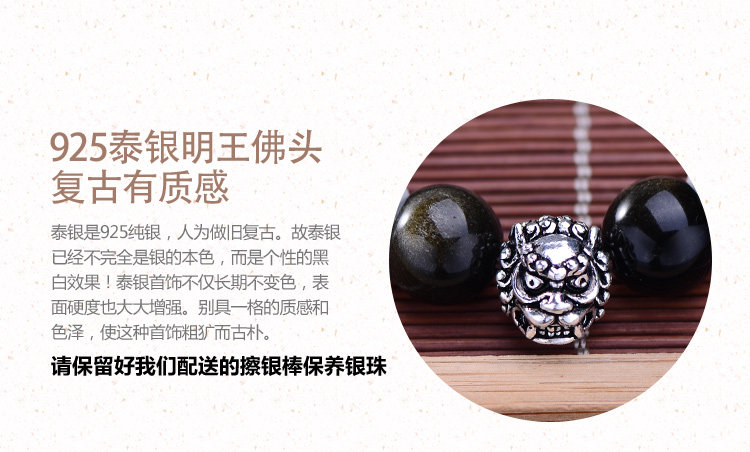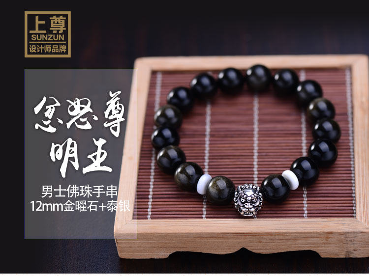 忿怒尊明王佛珠手串 男 金曜石 泰银手链 佛头 12mm细