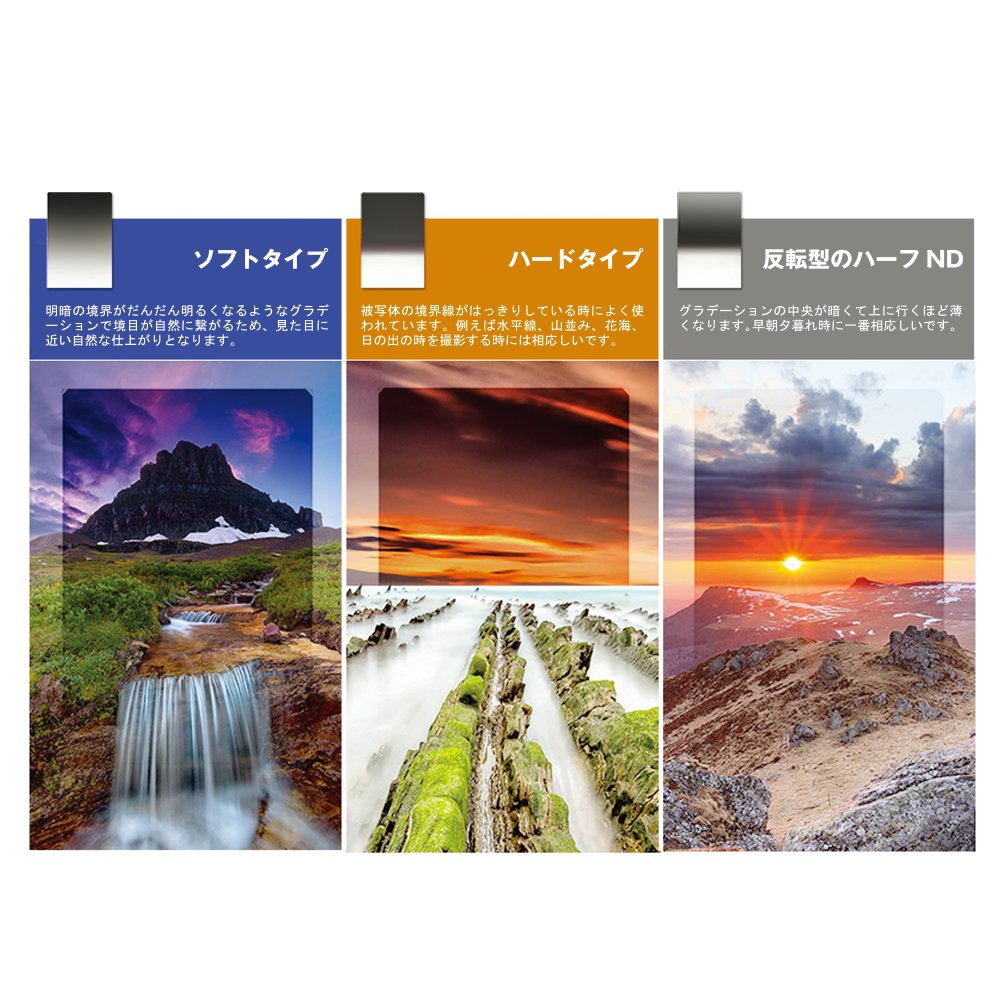Commonly used GND filters are soft type, hard type and (Reverse GND) three kinds.