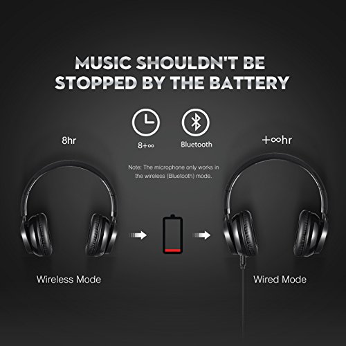 More than "8-hr Battery Life", Bluetooth & Optional Wired Connection -- Pair fast and stay stable with your bluetooth enabled device. The battery provides up to 8 hrs music playing time in 2-3 hrs full charge. Besides, Mpow Thor also has a backup audio port, you can use the provided audio cable to connect to your phones without worrying about running out of battery.