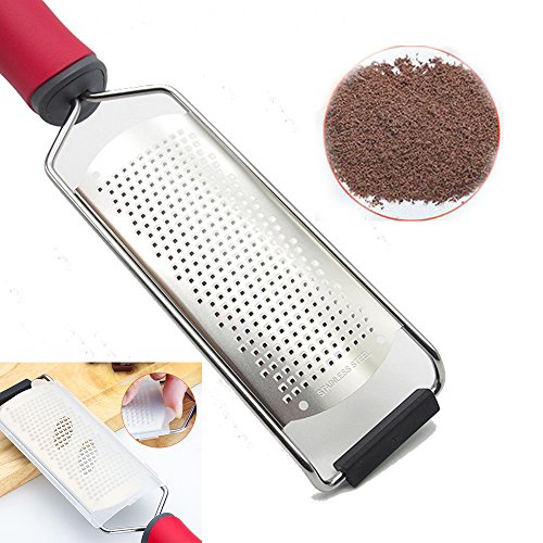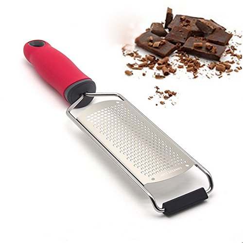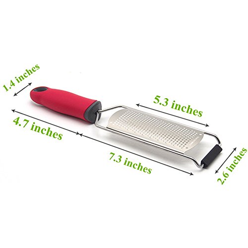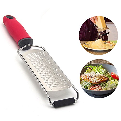 Cheese and Vegetable Grater Lemon Zester - Stainless Steel Blade Red Ergonomic Handle Great Ideal Hand Grater for Parmesan/ Citrus/ Ginger/ Garlic/ Nutmeg/Food/Coconut/Chocolate (Red)