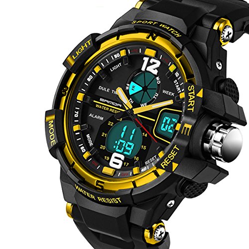 -. Title : Sanda Kids Digital Analog Watch Military Sport Outdoor Big Face Black Wrist Watches Gold