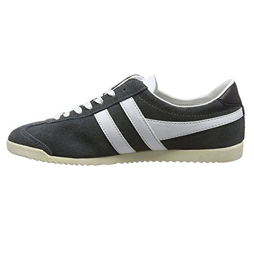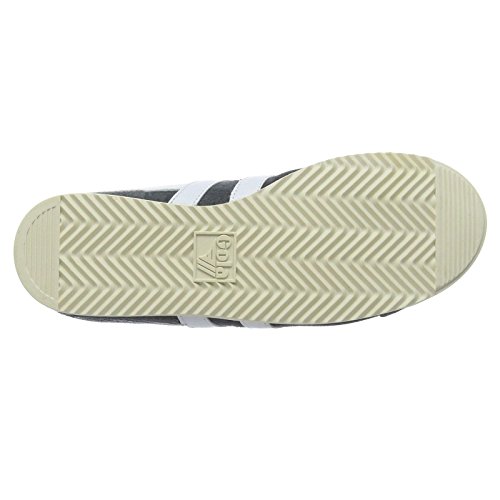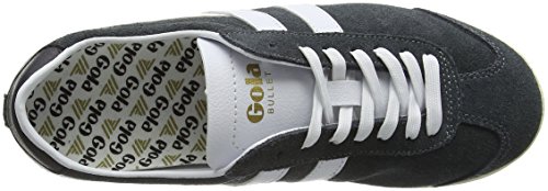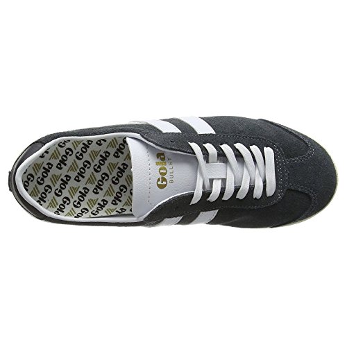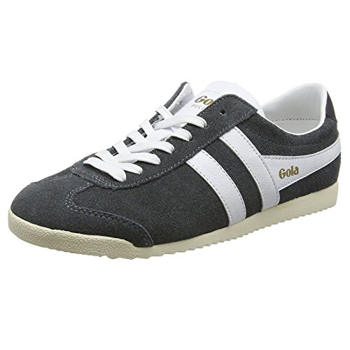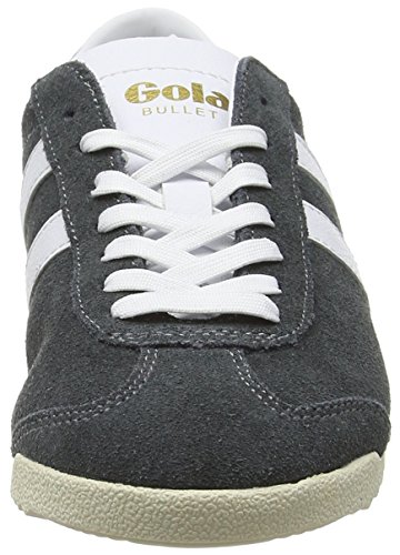 Studio : Gola Publisher : Gola Binding : Apparel Product Description Classics Bullet women's retro trainers by Gola come in a versatile grey and white colour combination. Casual style low tops combine breathable suede and leather in their upper for the great looks and long lasting style. Running strong since 1976 this timeless footwear features white, synthetic leather interior with a removable insole which will cushion the walk. Gently padded heel and collar will grip the ankle and Gola logo on the tongue and side channels DNA of the brand. Trainers sit on the durable rubber sole with zig zag style pattern for traction on variety of surface. 0